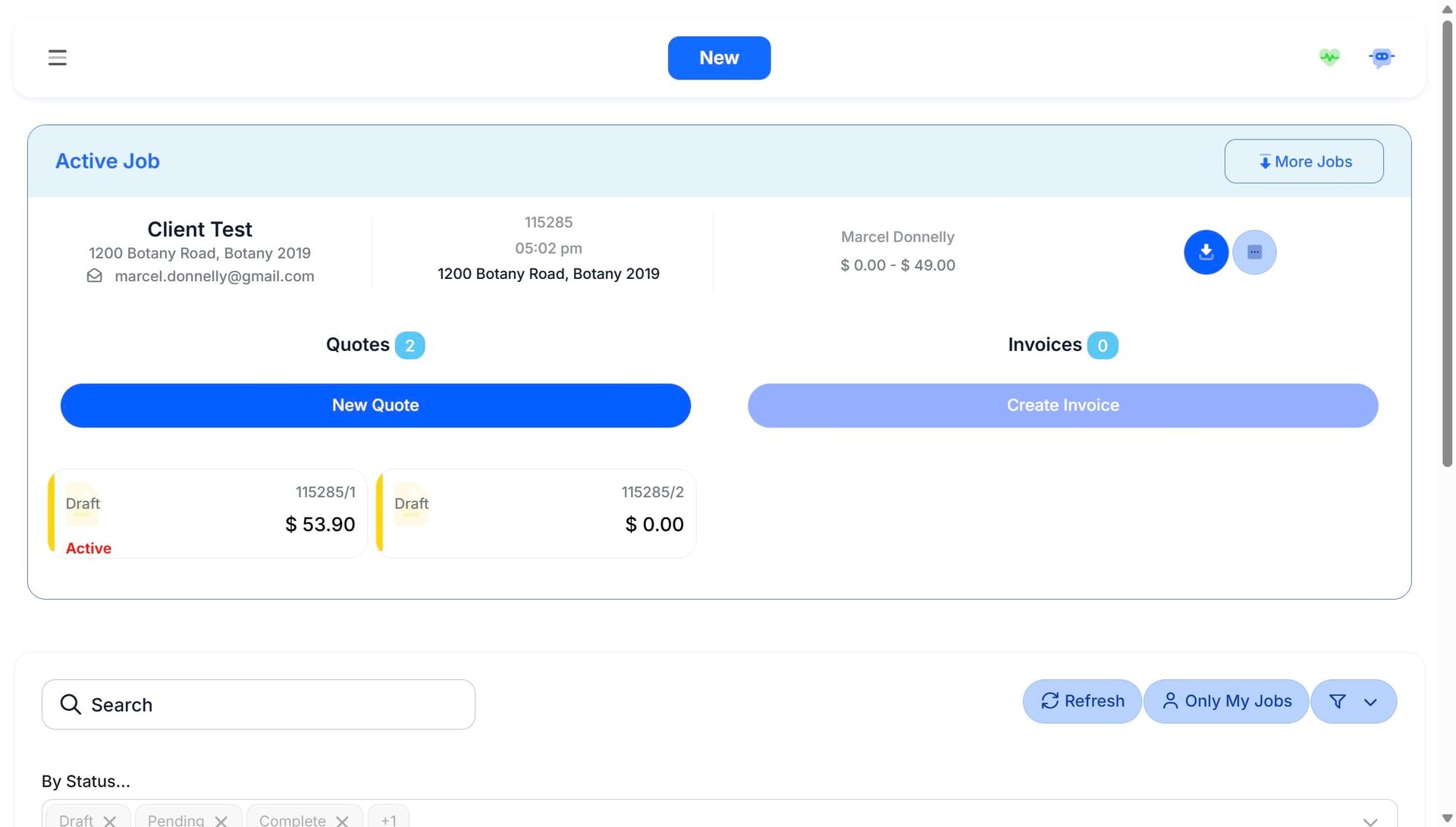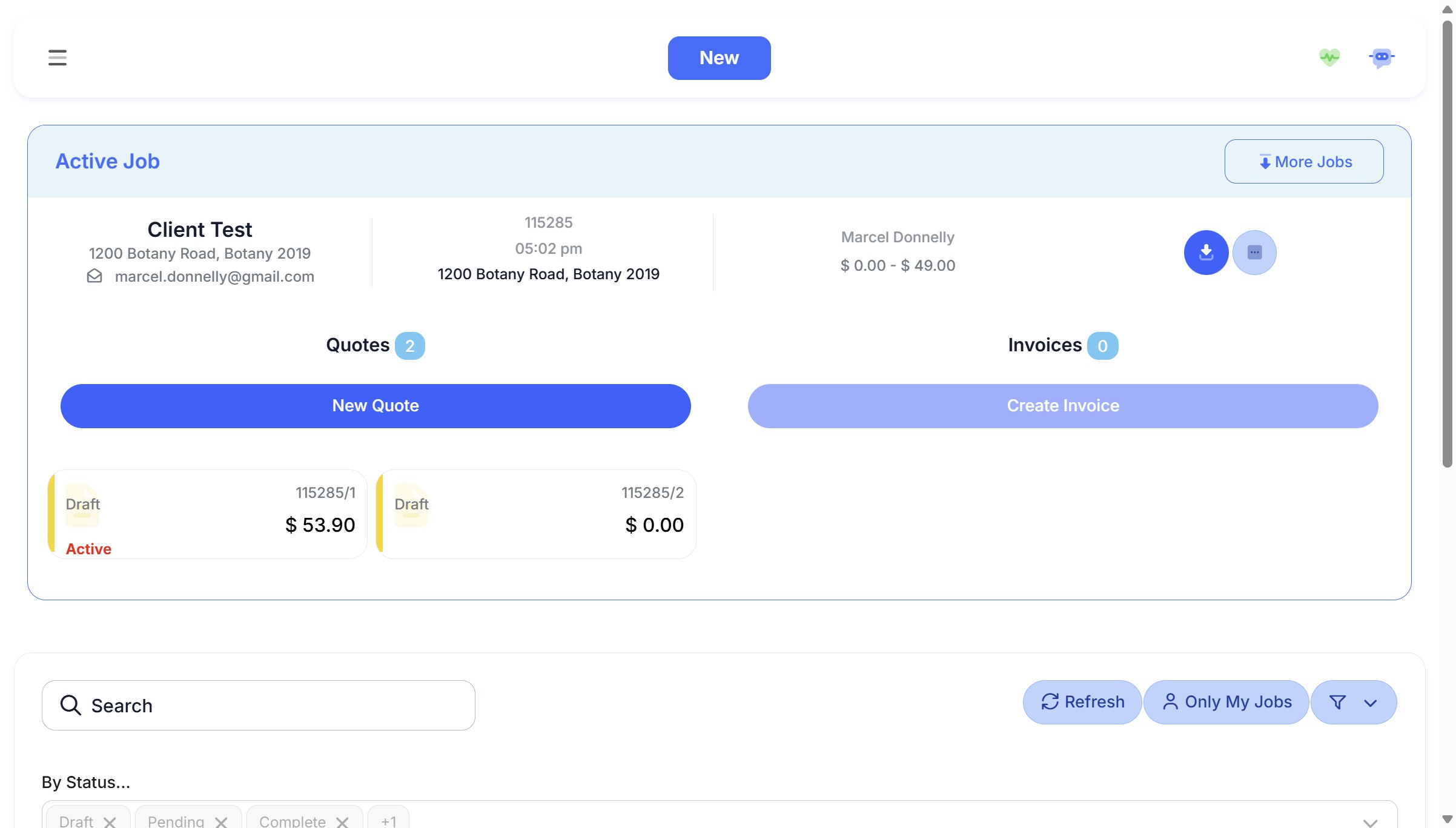 Click 'Job Card Menu'